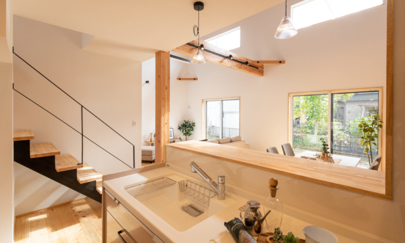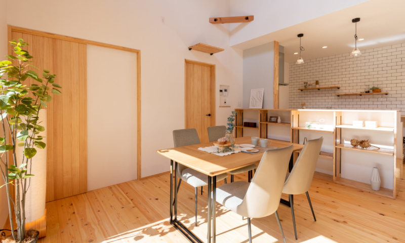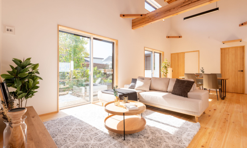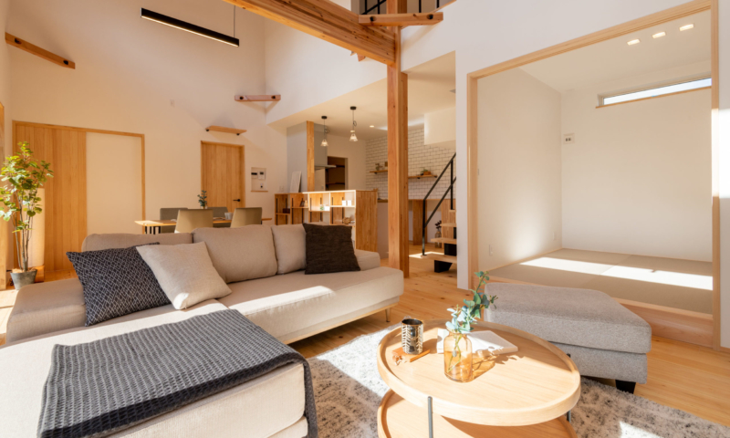 土地が広いので贅沢に大きなLDK. 南からたっぷりの太陽光が入り開放感あふれるお家になりました。